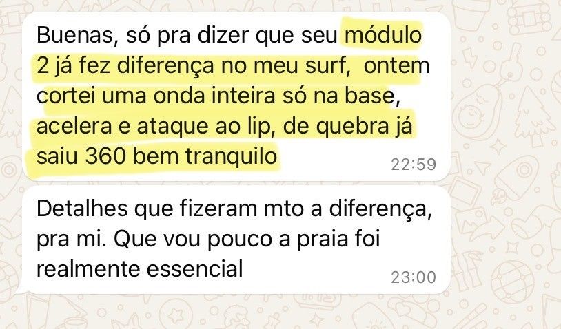 O Bodyboard Pro: Flying vai muito além de manobras: ele muda a forma como você enxerga e reage dentro d’água. Você vai aprender desde técnicas de respiração poderosas, até leituras de mar que ninguém nunca te explicou. É um método construído com base na minha vivência nas melhores ondas do mundo — o que funcionou pra mim, funcionou pra meus alunos…E agora, vai funcionar pra você também.